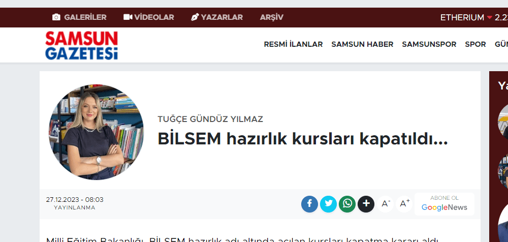 Milli Eğitim Bakanlığı Özel Eğitim ve Rehberlik Hizmetleri Genel Müdürlüğü 17.11.2023 tarih ve 89895150 sayılı yazısıyla; ‘BİLSEM’e hazırlık adı altında açılan kurslara velilerimizin çocuklarını göndermemeleri yönünde bilgilendirici çalışmaların yapılması, bu adla faaliyet gösteren yerler hakkında ilgili mevzuat hükümleri doğrultusunda idari para cezası uygulanması ve bu yerlerin valiliklerce kapatılması talimatını verdi.’